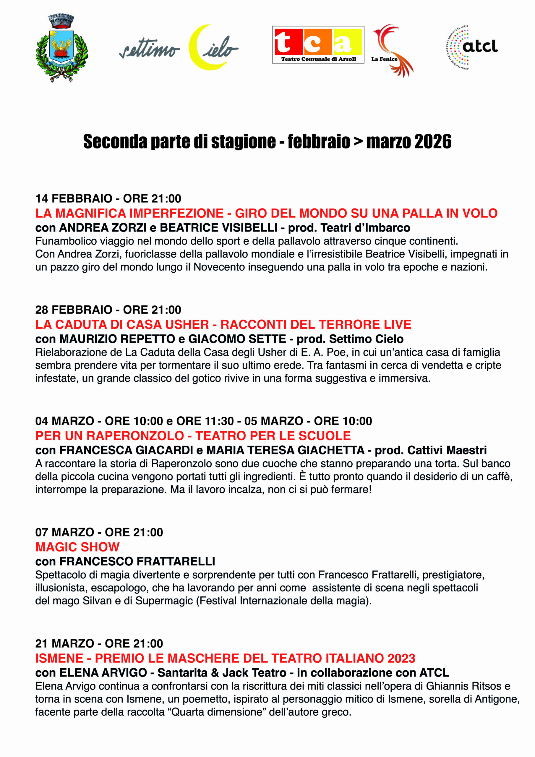 TEATRO LA FENICE DI ARSOLI – PIAZZA DEI MARTIRI ANTIFASCISTI 1 – ARSOLI (RM)